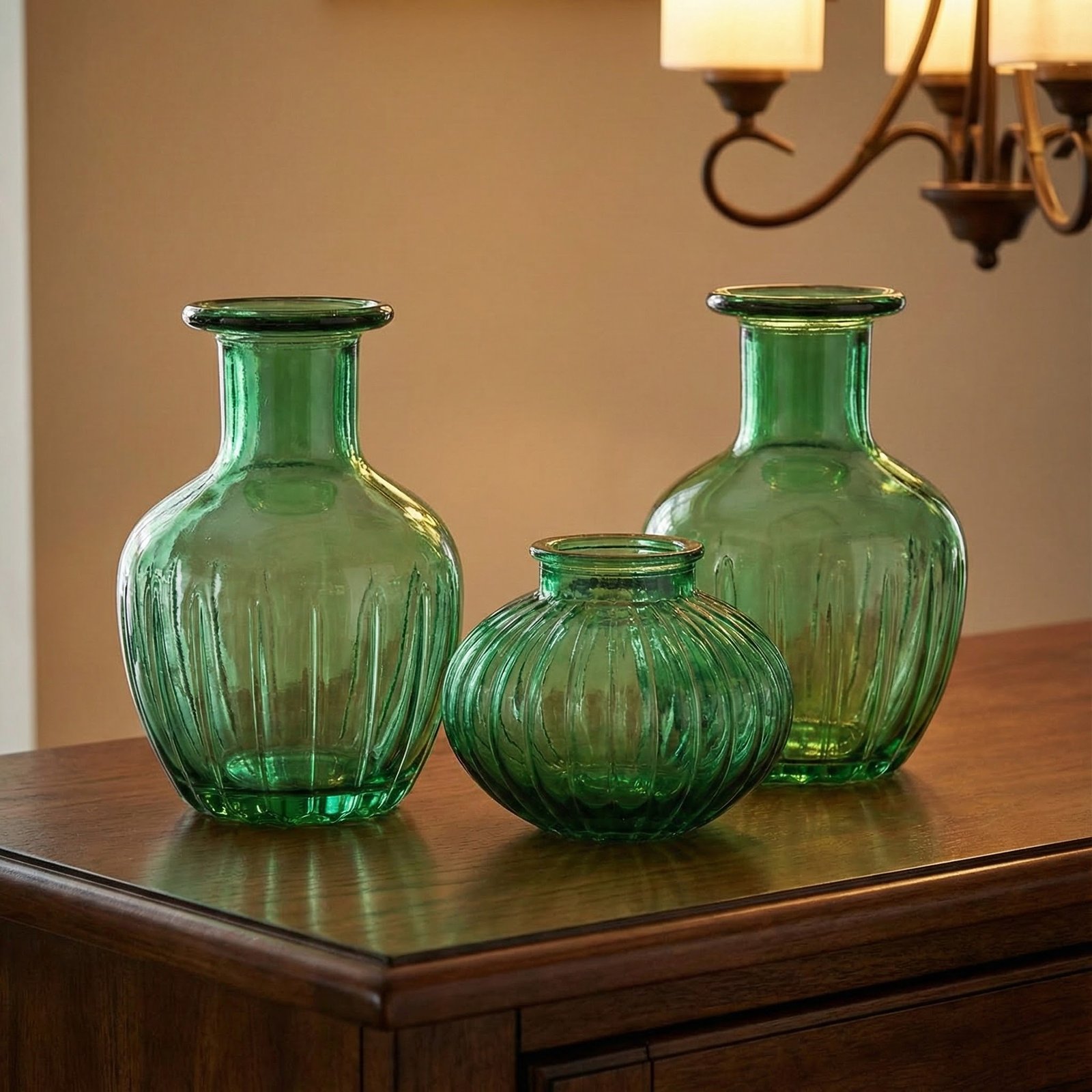 Elevate your living space with this stunning Emerald Green Glass Vase Set.