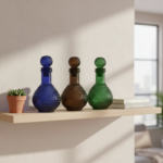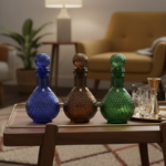 Be the first to review “Luxury Diamond Cut Glass Decanter Set (3 Pcs) – Blue, Amber, Green Accent Bottles” Cancel reply