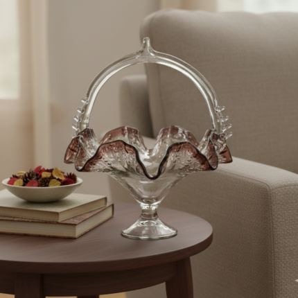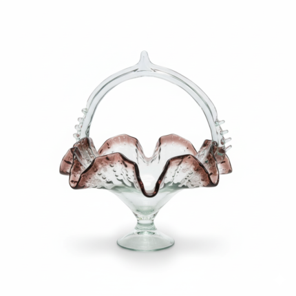 Elegant Ruffle Glass Basket Bowl – Unique Mauve Centerpiece for Formal Decor