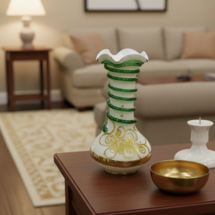 Vibrant Hand-Painted Glass Vase – Green & Gold Design For Festive Home Decor