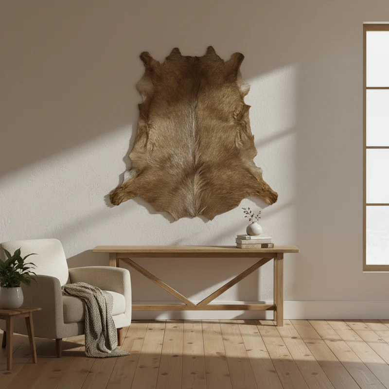Ideal for rustic, farmhouse, bohemian, and eclectic spaces, this hide brings natural warmth and tactile elegance to any room.