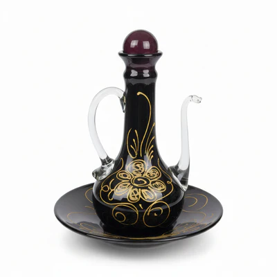 Elegant Black Art Glass Decanter & Plate Set – Handcrafted Gold Detail