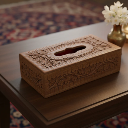 Elegant Hand-Carved Wooden Tissue Box – Traditional Home Decor For Drawing Room