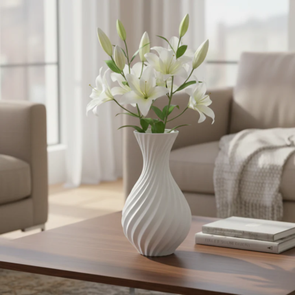 White Ceramic Vase – Modern Swirl Twist Pattern For Trendy Home Decor